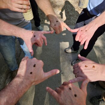 Während die perfekt portionierten Brotstücke sich tapfer in der Käseflut tunkten, wurden die Gespräche begleitet von einem Zwischenspurt mit Weisswein. Ein Schnappschuss hier, ein Lachen dort, und ehe man sich versah, standen die Tische voller Becher und Büchsen. Die Diskussionen waren grösstenteils geprägt von dummen Sprüchen, die man besser nie im Sitzkreis hätte wiederholen sollen.
