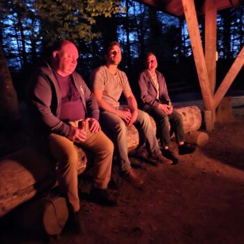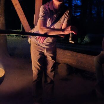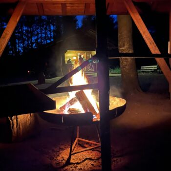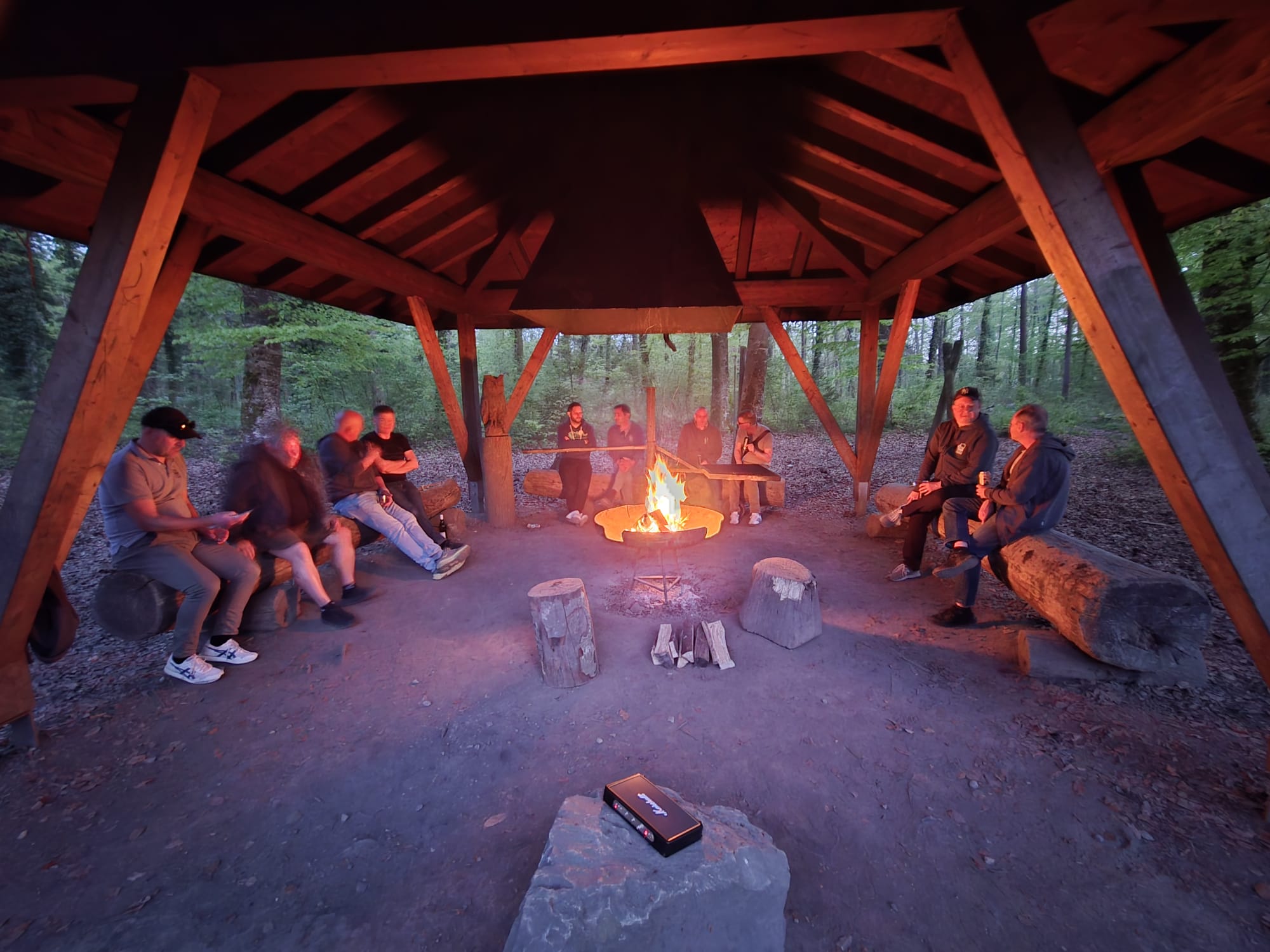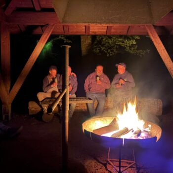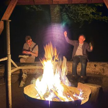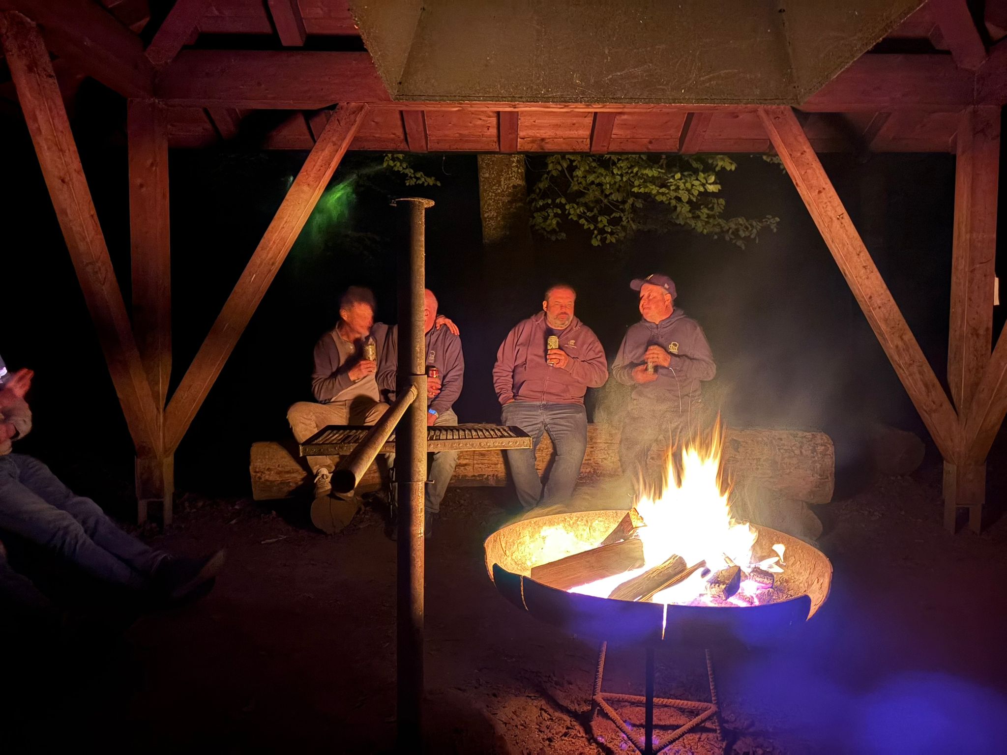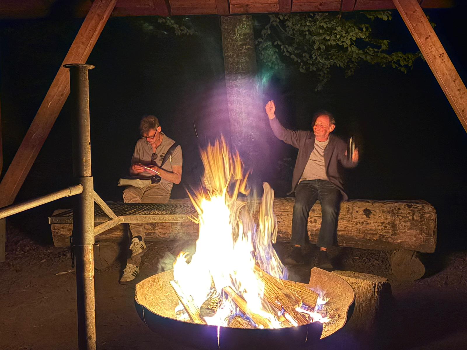 Danach gab es Stimmung am Lagerfeuer: Geplänkel, gegenseitiges Anlügen, wie immer. Und die Funken sprangen wie kleine Feuerwerke in die Nacht. Die Aktivitäten des DJ mündeten dann in eine freie Musikwahl, was nicht zwingend besser war.